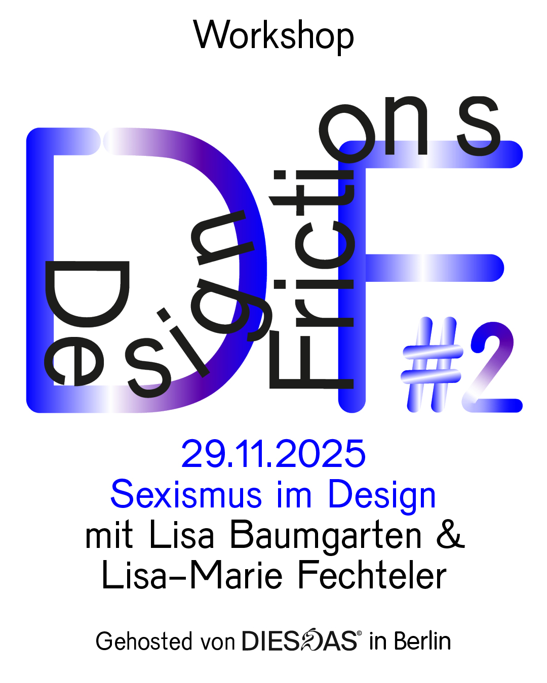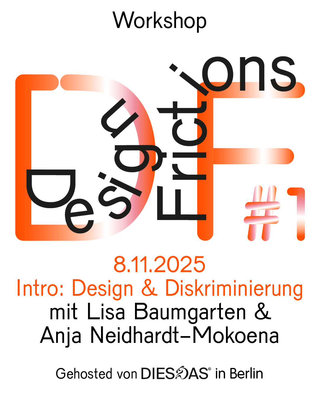Workshopreihe, inittiert von Lisa Baumgarten, gehosted von DiesdasDesign entsteht nie im Vakuum. Jede gestalterische Entscheidung trägt soziale, kulturelle und politische Dimensionen in sich und kann bestehende Machtverhältnisse reproduzieren oder herausfordern. Die Workshopreihe Design Frictions widmet sich der zentralen Frage, wie Design diskriminierungssensibel gestaltet, gelehrt und vermittelt werden kann.